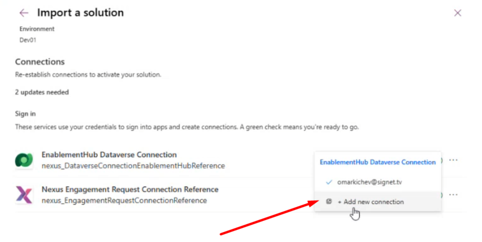 5. After importing the connector, click on "Import solution" again to import the “Nexus          Enablement Hub”