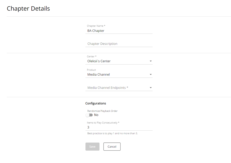 Media will be displayed one by one or randomly based on the “Randomize Playback Order” value from the Chapter Details page.