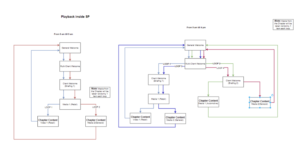 The User can add the Chapter more than one time. The User can remove the chapter from the On-Site Channel Playback by clicking the “X” button. The User can change the order of the chapters by drag & drop them.