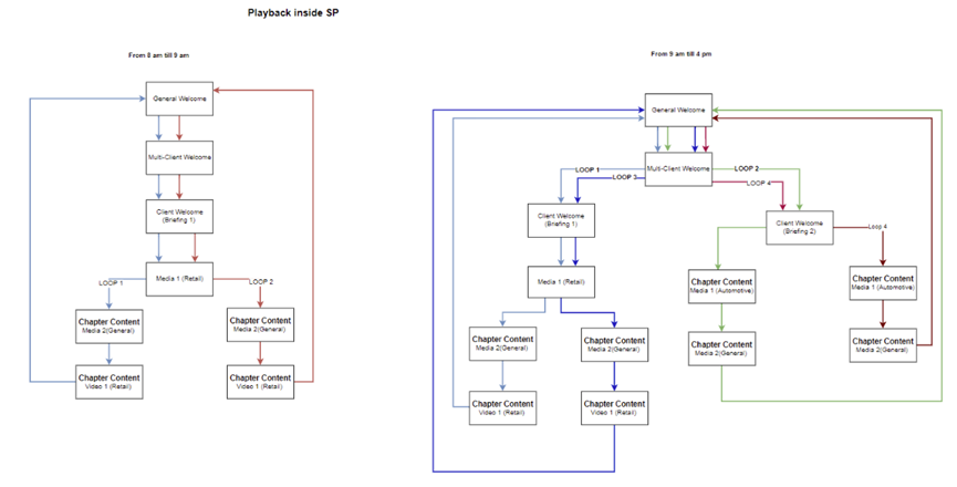 Based on the Chapter Details “Items to Play Consecutively” value, one or more items will be shown each time. Media from the chapter will be shown based on its center.