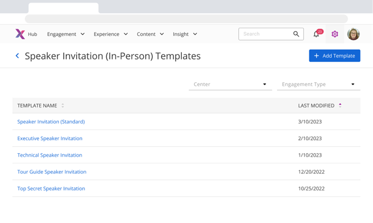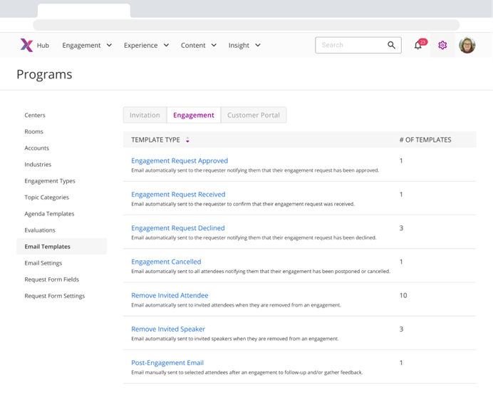 Customers can create as many templates as they need for each email type and choose which they want to send to attendees and speakers.