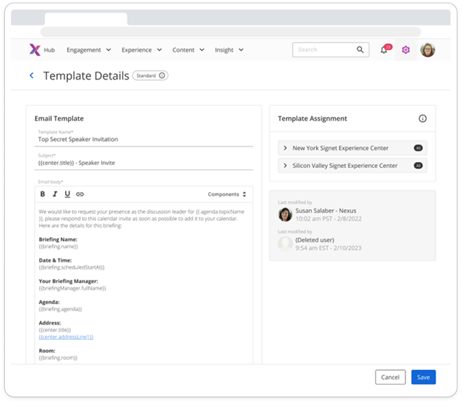 The new element of the template is “Template Assignment,” which defines which template will be shown first in the template drop-down while emailing the attendees/speakers manually. For automatically sent emails, template assignment defines which template will be automatically sent to the User.