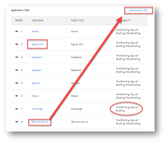 The Customer Engagement App Settings allows users to manage the App Tab Settings at the Center Level. Add a new custom tab, rename a tab &/or the page name, modify the schedule of the tab or edit the order of the tabs.