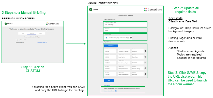 Signet's Virtual Screens also offer the ability to create “off the cuff” briefings from this tool. This data does not update your briefing tool.