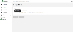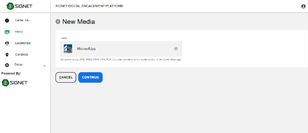 On the ‘New Media’ page you should first select some media file from your computer and upload it. During file uploading a validation of file will be provided: only files with extension jpeg, jpg, png, mp4, pdf and size less than 5 Gb will be acceptable. After successful validation the ‘Continue’ button will be available(Figure 2.5). Clicking on the button will show other media fields(Figure 2.6). Here there are some mandatory fields with asterisk on the right and some optional fields. After providing all mandatory fields the buttons ‘Save’ and ‘Save & Add Another Media’ will be enabled.