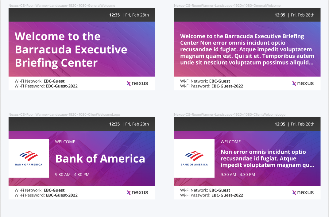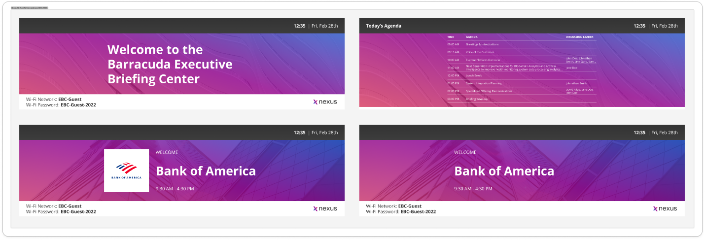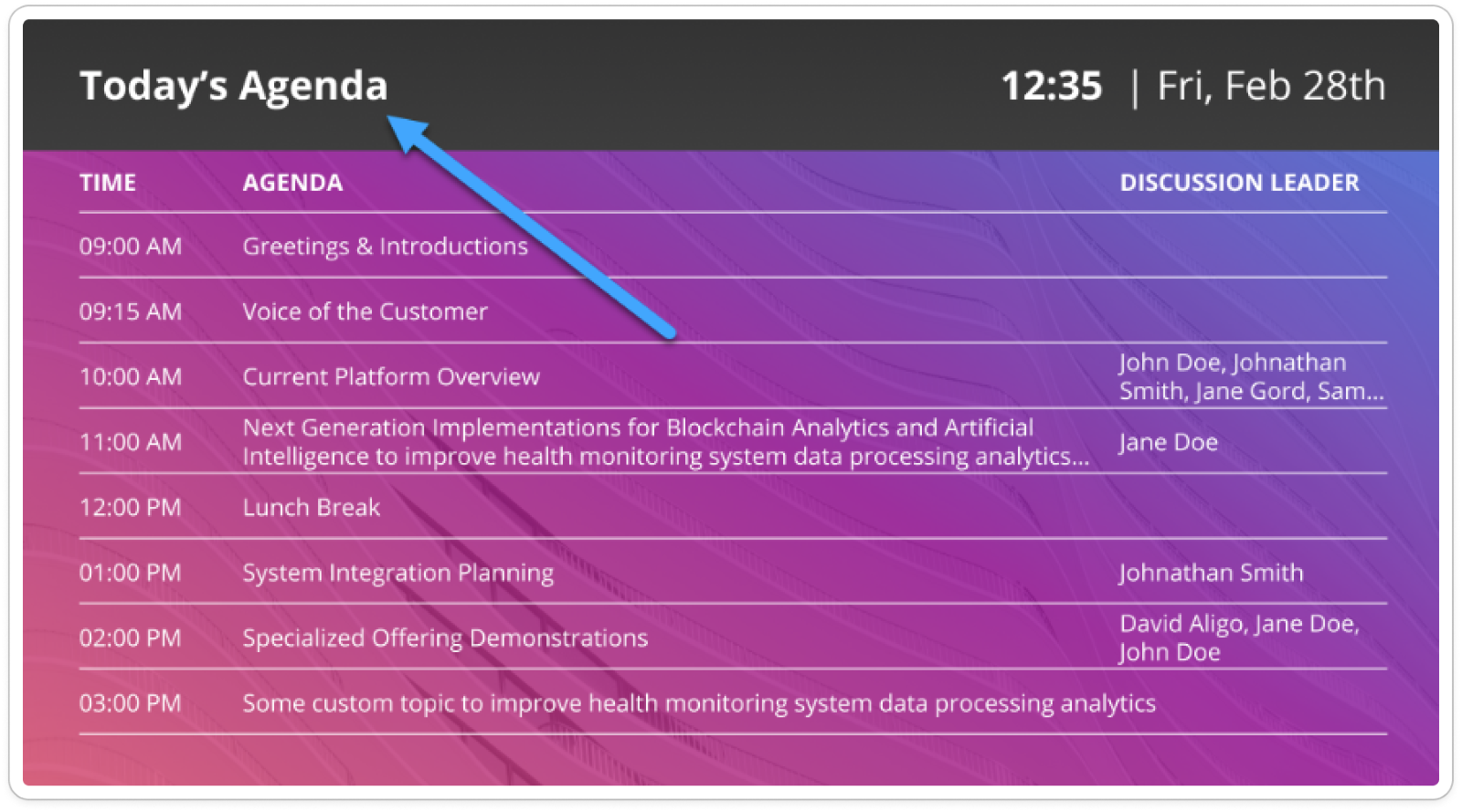The Agenda header text is now editable on the Room Warmer. The “Agenda Greeting Message Text” can be filled on the Hub and reflected on the product side.