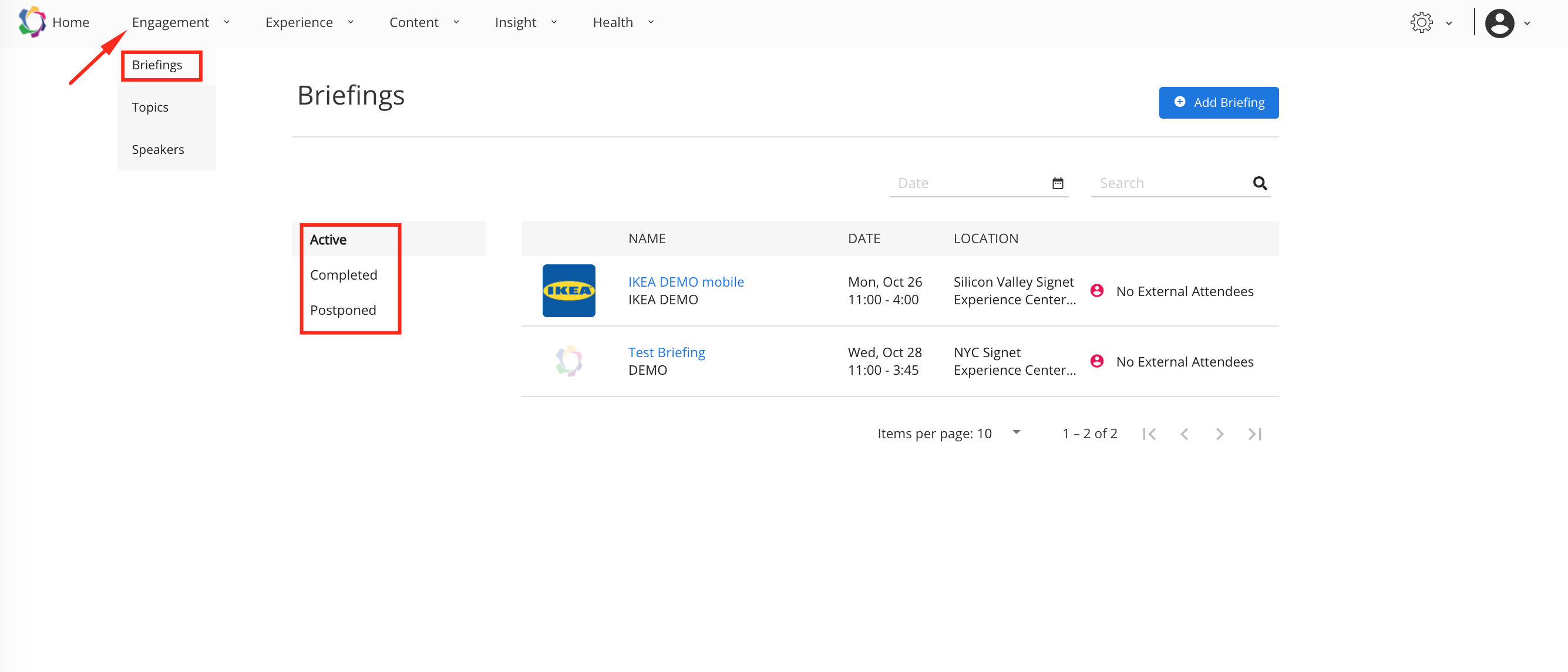 The CS platform currently shows ALL briefing statuses (in your Briefing Tool, such as, Briefing Source) - Confirmed, Declined, Pending, Cancelled, Closed, Deleted and Draft. This is subject to change in a future release.